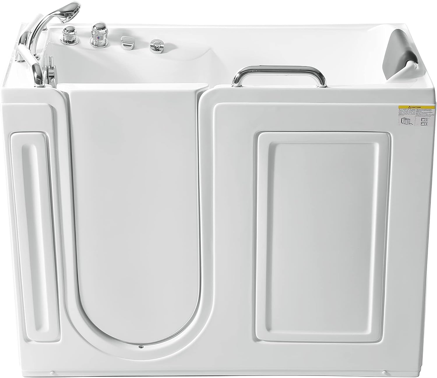Empava 53 in. Acrylic Whirlpool Walk-in Tub Water Jets Alcove Bathtub with Left Side Door , White